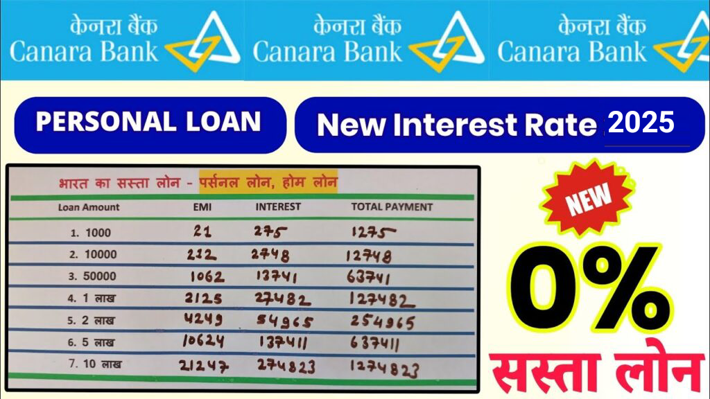 2025 में कैनरा बैंक पर्सनल लोन ब्याज दरें