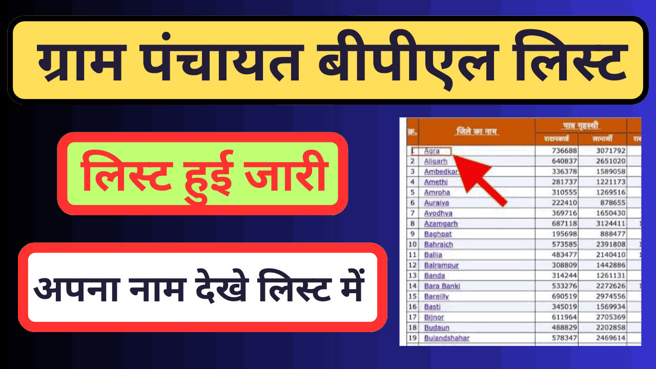 Gram Panchayat BPL List 2025- नमस्कार दोस्तों! यदि आप भी बीपीएल राशन कार्ड सूची में अपना नाम देखना चाहते हैं, तो यह आर्टिकल आपके लिए अत्यंत महत्वपूर्ण है। जैसा कि आप जानते हैं, बीपीएल (Below Poverty Line) धारकों को राज्य और केंद्र सरकार की ओर से विभिन्न प्रकार के लाभ दिए जाते हैं।