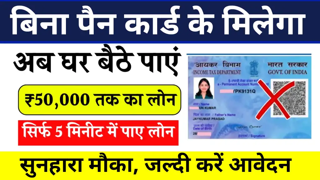 Personal Loan Without PAN Card: क्या आप भी बिना पैन कार्ड के पर्सनल लोन लेना चाहते हैं तो आज हम आपको बिना वन कार्ड के पर्सनल लोन कैसे ले की जानकारी देने वाले है जिसे आप ₹50000 तक लोन के लिए आवेदन की क्या प्रक्रिया फॉलो करना होगा लोन के लिए और क्या-क्या डाक्यूमेंट्स के जरुरत पड़ेगी वो सभी जानकारी आपको बताएँगे जी है।